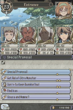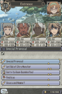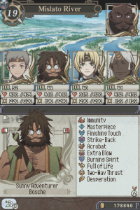 Tierkreis is a drastic departure from the Suikoden formula. First off, the protagonist is no longer silent, and has a personality. Next, the Army and Duel battles are omitted. Instead of one Army battle with all of your characters, you’ll fight a series of battles with different people. The most shocking change in this spinoff is that none of the recurring characters from the Suikoden world appear in Tierkreis. Not even series mainstays like Jeane and Viki make a minor appearance.