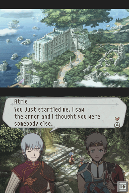 After Suikoden V, the series took a short hiatus. With the PlayStation 2 falling out of favor and the JRPG genre undergoing transitioning problems to the HD console market, many Japanese publishers flocked to the portable platforms. So it should come as no surprise that the next Suikoden would be released for the Nintendo DS. What is surprising is that this game, dubbed Suikoden Tierkreis, does not expand on the established Suikoden world. Rather, it’s set in a parallel world that just happens to contain some of the aspects of a Suikoden game.