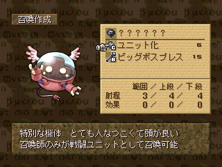 In addition to each of your characters getting assigned a human partner, you get to choose a summon companion to join you at the beginning of the game. Other than this, some slight changes regarding class promotions and summoning abilities, and a more balanced difficulty level, Summon Night 2 is pretty much the same as the first. You can now save right before battles, which is a bit of a mixed blessing - there's no way (at least that I found) to return to the map screen, so if you want to level up or buy some more items, you're pretty much screwed. This goes for the rest of the Summon Night games, actually. This installment comes on two CDs, so it's a bit longer, and includes a gallery full of unlockable pictures.