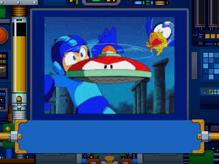 The game is split onto 3 discs, each playing like a single episode from an anime OVA complete with an intro and “Next Episode” bumper. Much of the same voices from the Japanese Mega Man 8 return including the same opening and ending themes by Ganasia. An interesting addition is the inclusion of narrator at rare segments, voiced by anime & game veteran Norio Wakamoto. Rather than looking the same way and quality as the FMVs from Mega Man 8, the art style looks quite a bit cheaper, about on the same level as the educational Upon a Star anime.