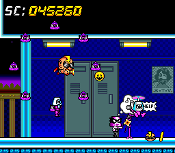 The addition of redbook audio music should be a strength, and it is, sporadically. As the title suggests, there’s are a few rockabilly tracks, a genre of music you don’t often hear in video games. These tracks are great! A handful of vocal tunes are also featured, including the introduction, which shows off Zonk’s powers, and the game over music, where the singer croons in despair as Zonk trudges off into the sunset (until you choose to continue anyway). The rest of the music has a light-hearted tone, but they tend to be really boring, and overall the soundtrack pales in comparison to the awesome chip music from the first game.