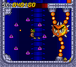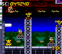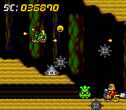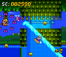 The visuals have taken an odd step back, too. In still shots, it looks about the same, as the sprite work is great. But it has lost all of the cool parallax scrolling of the original Air Zonk, making the world feel strangely flat.