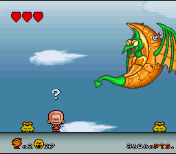 By 1994, the TurboGrafx-16 had been long dead in America, and it was clear that the Super Famicom was the system of choice in Japan. After laboring so hard to support NEC’s systems, Hudson finally threw in the towel and brought the next Bonk game to Nintendo’s 16-bit system. Unfortunately, they didn’t seem to have learned after the issues with Bonk 3. The shrinking/enlargement power-ups still aren’t particularly interesting, and the level designs aren’t really up to par either.