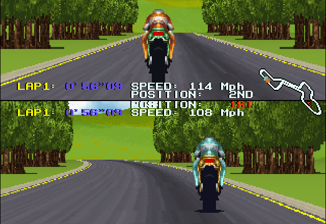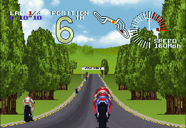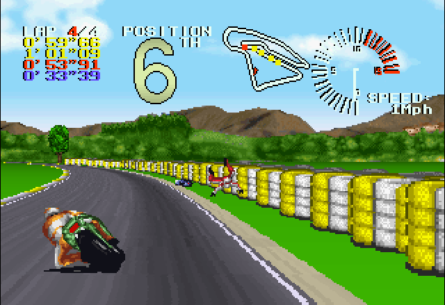 There were several more racing games planned for the platform such as conversions of Gremlin Graphics’ Nigel Mansell’s World Championship Racing, Jaleco’s Cisco Heat and Leland Corporation’s Super Off Road, but none of these titles would ever be released due to the lack of commercial success of the platform. However on the 2D front, the Jaguar did manage to get three titles that stand above on the system’s limited racing library: Atari Karts, Power Drive Rally and Super Burnout. Created by the small but talented French team named Shen Technologies, whose members came from the demoscene, and inspired by both Super Hang-On and Suzuka 8 Hours, Super Burnout is not only the best racing title but also one of the best games in the library of the Jaguar. This is especially true considering it was developed within a year in one of the authors’ bedrooms with a borrowed Alpine development kit from Virtual Xperience, who co-published the title alongside Atari, which is quite an accomplishment