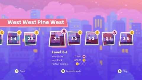 Your best score and rank are saved for each level, and there are online leaderboards (submitting your score is optional and not automatic) if you want to compare yourself to other players. The leaderboards are not searchable though, and it’s hard to tell if, say, coming in 472nd place is a good thing or a bad thing.