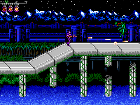 To ease the burden a little, Super Cyborg saves your progress once a stage is cleared, but the drawn-out status screens seen after continuing might become annoying after a while if you lose time and time again. When things get too troublesome, one can also resort to a 40 lives cheat, entered almost in the same sequence as the famous Konami Code.