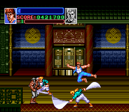 The Japanese version does not fix any of the game’s other issues, but at least the menu allows choosing the number of credits and extra lives. The standard difficulty also underwent a little bit of rebalancing, especially nerfing the knives. Most of it is just subtle tweaking, but the biggest change involves the boss fight in the third stage: in Super Double Dragon, the Lee brothes face a pair of twin martial arts masters one by one, whereas in Return of Double Dragon they have to be fought together. The final stage is also stretched out a bit, leading to another corridor with some stairs going up and down and a new boss room.