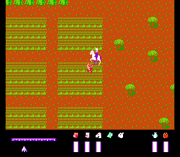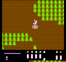 “Nagai tabi ga hajimaru…” (“The long journey begins…”) proclaims the opening text of Super Monkey Daibouken. And boy, are they not kidding. As one of the many versions of The Journey West, you control Son Goku the Monkey King as you lead the monk Genjo and his steed from China to India. This quest appears to occur in real time, seeing how some have estimated the game world to contain approximately 700 screens. It consists of many small, isolated islands, and your caravan moves at approximately a square a second. The landscapes seem to have been designed with no real coherence, and the gates to the next area are often invisible until you’re right on top of them, forcing you to tediously comb each and every square until you’re warped somewhere else. Worse, just because you find another area doesn’t mean that it’s the correct one – it can just as easily send you to a section which appears to be a dead end. Time passes on a day-night cycle, which is impressive for a console RPG from 1986, but certain gates only appear at certain times. It is maddening.