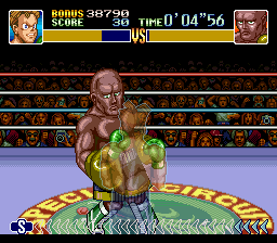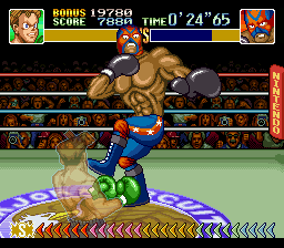 Though different from the arcade game of the same name, the SNES Super Punch-Out!! is much closer to the originals than Mike Tyson’s Punch-Out!!. Gone is the little boxer named Little Mac, who has been replaced by a new nameless blonde haired kid whose mission it is to win the title of the greatest World Video Boxing Association boxer. The perspective is the same as the arcade game, except your character is transparent instead of being a wireframe model. The timer has gone back to the three minute limit with one single round. There are a total of four circuits (Minor, Major, World, and Special), with the Special Circuit only becoming accessible with a record of twelve wins and zero losses. Besides the regular game mode called Championship Mode, this game features a Time Attack Mode that lets you beat your time records, which can be viewed in Records View Mode. This time, the game uses battery-backed memory instead of passwords.