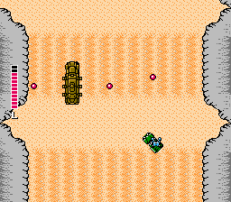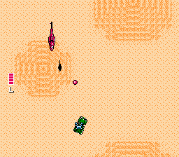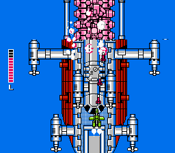 The boss designs keep with the game’s vehicles-only motif. There are: armored tanks that break apart to reveal additional sections to shoot; an enormous one-hit-kill laser cannon that’s actually five laser cannons in one; a fiesty eyeball surrounded by two laser cannons; a Turbo-Prop Space Cruiser, which shoots eight missiles at a time, expels hundreds of bullets, and has two swinging chains that would look more appropriate in a Mario game. There are also three final bosses: two enhanced versions of earlier bosses, and a Super Missile. The Super Missile, once broken open by your blasts, reveals an eye that is surrounded by a cloud of destroyable blue balls. Shoot the eye enough and the blue balls turn to stronger red balls, some of which can’t be shot.