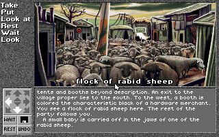 Steve Meretzky reportedly set out to create a game whose RPG components would not intimidate adventure gamers, and whose adventure game components would not prove to be an obstacle to those who preferred RPGs. While he succeeded, the whole thing might have ended up being largely forgettable if not for the stellar quality of the writing. As it is, it might just be the funniest RPG you’ll ever play.
