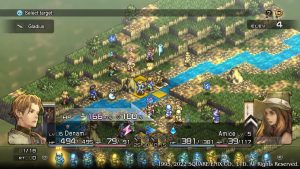 The harshness of permadeath has also been reduced. Now, characters may be killed off, but there are several chances to save them beforehand. From the outset, revival items can be bought to raise killed characters from the dead. Just like in Final Fantasy Tactics, there is a three turn count to raise them before they pass away. Even if they aren’t reached in time, they only lose a “life”, like in a platformer. Characters now have three lives, and only once they’ve been killed three times do you lose them forever. Yet no player will even get to that point, as save scumming is built right into the game. Simply press “L” to activate the “Chariot Tarot”, and you can rewind up to fifty turns. While the “Chariot” is a welcome addition, preventing players from having to start a stage over if they make a mistake, the other methods to save characters are redundant, and discourage the cautious planning of moves.