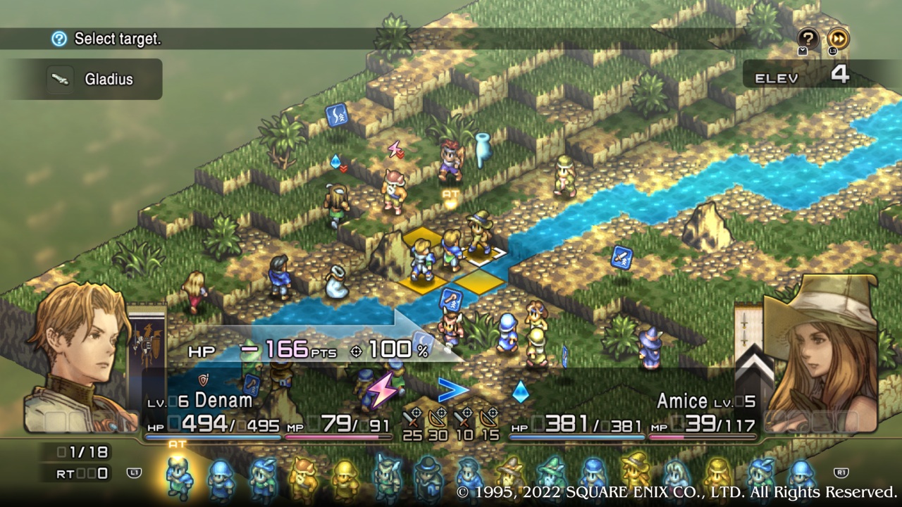 There is also an intensive focus on character customization via new skills. Originally, skills were scarce and either restricted to classes via their regular abilities or held by special characters; now, characters may learn a plethora of abilities to improve. These range from passive stat boosts available to every class, to “finishing moves”, and interesting class-specific ones. They can turn the tides of battle quickly. Initially, this aspect seems to, again, make things too easy. Yet there are several mitigating factors that help preserve balance. Enemies themselves can learn from the entire range of skills, so the player is forced to learn how to offset these advantages by building their own. There is also a limit of ten skill slots. However, it doesn’t go in the direction of Final Fantasy Tactics by making every character customizable ad infinitum; Terror Knights can’t heal, for instance. Characters are nearly handicapped without them, in some ways starting off worse than they did in the 1995 version. Where once every character could counter any direct physical attack, now counter-attack has to be learned and assigned as a specific skill. Attacks are much weaker and inaccurate without learning the corresponding stat boosts. What this means is that it preserves the feeling of building a team from the ground up.