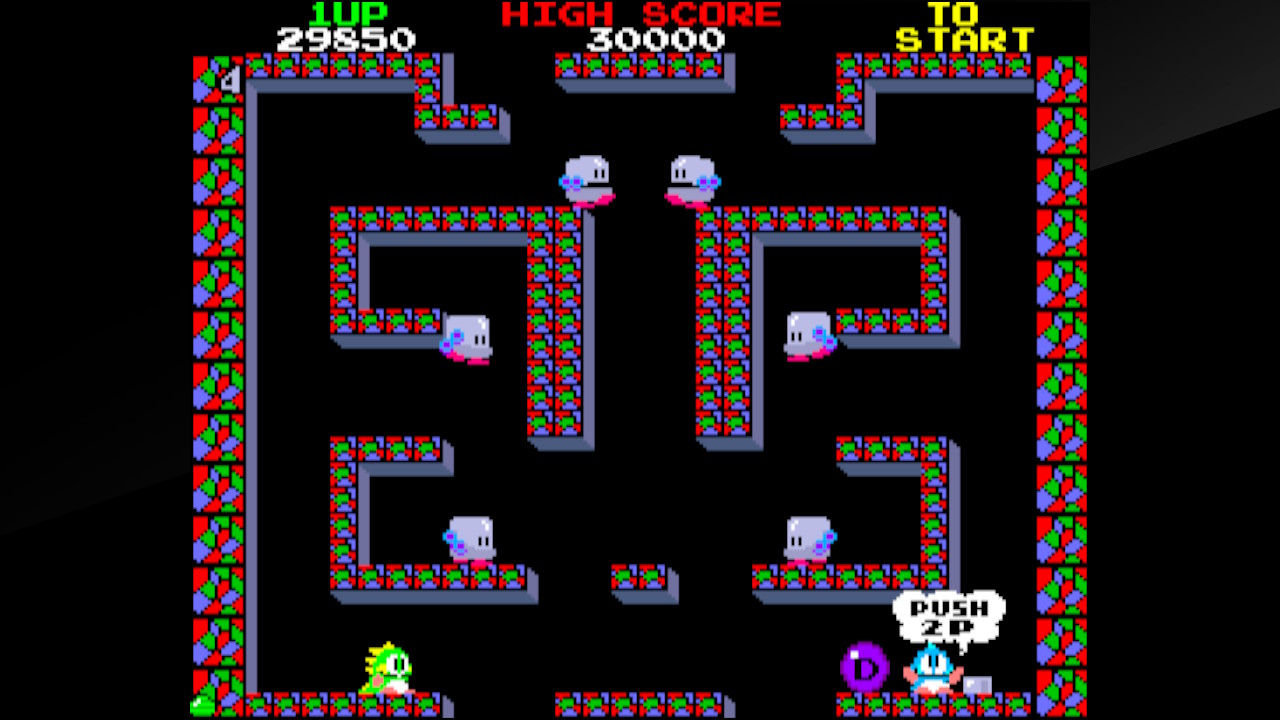 Bubble Bobble is one of Taito’s most popular retro properties so it’s a little baffling that it took so long to appear on one of these Taito Milestones collections. Better late than never, though. In this single screen platformer, you control mini dinos Bub and/or Bob as they use their bubble breath to trap and destroy all of the enemies, then grab the score-giving fruit they produce. There are plenty of newer sequels, and it would’ve been nice to see later, rarer games like Bubble Memories, which look a little nicer. But it’s hard to argue with a classic.