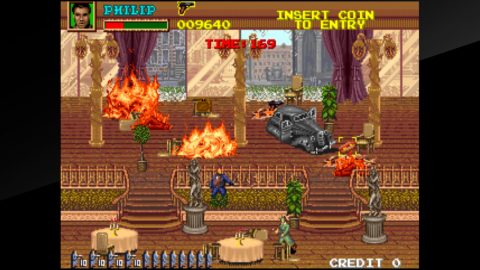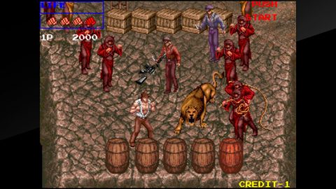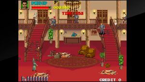 This is the real gem of this collection, since it’s never been released before in any other Taito collection. Taking place in 1930s America, this arena shoot-em-up puts you in the role of a gangster as you shoot other Prohibition-era goons. Each level is only a single screen, and while the sprites may be small, they’re well animated and filled with detail, similar to Elevator Action Returns. This version also lets you enable a display that keeps track of your remaining bullets for ammo-limited weapons.