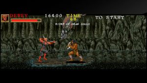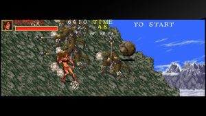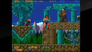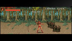 The third Rastan game switches genres to a beat-em-up, utilizing the multi-monitor widescreen setup as seen in the Darius games and The Ninja Warriors. In addition to Rastan, you can also play as amazon Sophia and thief Dewey. The levels are short but there are branching paths through the game, giving it some replayability. It’s a decent alternative to Golden Axe.