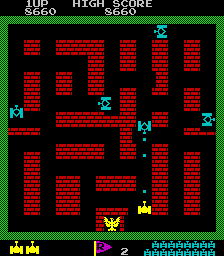 Although Tank Battalion debuted in the same year with Pac-Man and X-Rally, it runs on older hardware than either of those, looking primitive even by 1980 standard. The only sound is ambient booming explosion, which is bound to be drown out in middle of beeps and boops from the other arcade cabinets. Both you and enemies can only move half a tile at a time, further hampered by a noticeable delay between your input and your tank reacting to it. This proves to be an issue in stages where there’re no blockages to impede your foes’ course, as you can barely keep up with them because of jerky controls.