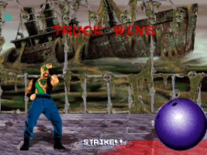 The characters themselves are similarly confusing, to say the least. The highlight would have to be Karla Keller, an ice skater who’s a spoof of very much real person Nancy Kerrigan, down to having a rival who attempted to sabotage her career. Pretty distasteful, that. You’ve also got Luke Cord, ex-Navy Seal who looks a lot less fearsome with the cartoon octopus on his chest, vengeful stripper Hannah Hart, and fat, bottle-chucking biker Truck Davis. There’s also the typical Native American stereotype in Billy Two Moons, who goes the extra offensive mile by actually scalping his opponents. All of them have backstories that briefly mention being betrayed by somebody or seeking revenge, absolutely no resolution to which appears in the game or its endings.