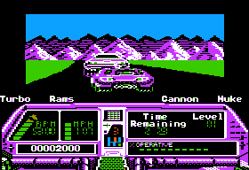 The post-apocalyptic 21st century is a wasteland, filled with mutated punks known as the DOA. Operating outside of eleven dilapidated tenements, their criminal acts are spreading lawlessness across the land. It’s up to a member of the elite Enforcer unit, a Techno Cop, to drive up and down the highways, scour the tenements, and put the DOA leaders out of commission. If Techno Cop sounds like every other action game from 1990, that’s because it is. The game is broken off into RoadBlasters-style driving sequences and mazelike side-scrolling levels, neither of which are particularly original.