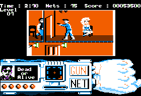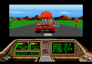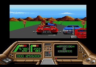 The driving sequences are probably the worst part of the game, although their low difficulty level and simple mechanics do help break up the more difficult mazes. In these portions, the player must drive to the next DOA hideout while avoiding foes. Enemies are limited to small cars and big trucks to blow up or run off the road. Occasionally, a DOA member can jump from a truck onto your car, continuously draining your health until they eventually fall off. When diving punks or other vehicles destroy your car, the game ends immediately, a peculiar design choice considering the player is given lives during the side-scrolling portions.
