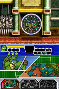 Combat is even further withdrawn from the overall game here than what it was in Battle Nexus GBA, though to Mutant Nightmare‘s credit the battles feel a bit more engaging thanks to the use of cooperation between the turtles and large colorful sprites. Rather the issue is with the fact that it’s not much of a sequel, and rather a “2.5” deal with the game looking and feeling so identical to Battle Nexus, and stages dragging on for way to long for the novelty to survive. The touch screen features are cheesy and tacked on, par for the course of earlier titles on the DS, but this game was already one year into that handheld’s lifespan and feels like a cheap GBA port with the least amount of creativity put into the touch puzzles, usually just involving turning a valve or typing a short numeric code. Compared to Battle Nexus, which was for the most part a very enjoyable game, Mutant Nightmare just serves to remind you of that particular title due to its likeness and raise the question “why aren’t you playing that instead?”