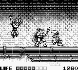 Fall of the Foot Clan is an alright game considering the era it was released, and looks and feels much greater than, say, Kung Fu Master on the same platform. It just seems to suffer from being rushed, from its short length to the lack of proper backgrounds in many places and the lack of true diversity. Some enemy sprites are just taken from other games with little modification, leading them to look out of place, like the mini-choppers who are taken straight from The Arcade Game and look completely flat, to the rabbit bats that are just moved over from The Castlevania Adventure.