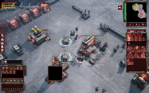 The two campaigns make a strong effort in terms of style and substance, evidently being where a good deal of the creators’ attention had been over development. The CGI briefings, framed much like the FMV cutscenes of yesteryear, generally have the option of either asking a series of questions that flesh out the universe and certain characters more, or just cutting to the chase. Even the way the UI stylings for each side are conveyed, be it the sleek and hypermodern interface of the GDF or the mid-1990s operating system trappings used by the Dynasty, help in selling that sense of immersion. The 22 missions comprising those modes not only do a good job easing you into each side’s mechanics and being dynamically varied in terms of what to get done – with standard “assault the enemy base” goals, covert commando-type raids, and frantic defensive stands happening over the course of a single level alone – but also incentivize going after secondary objectives by granting points that can be spent to acquire unique perks (like extra starting units and widespread energy weapons) which are carried over. Granted, the overarching storyline isn’t the most groundbreaking out there, and the cast isn’t too memorable save for a handful like the enigmatic Domovoy Molchanin. Yet combined with swappable upgrades and bonuses, as well as separate skirmish mode, these go a long way in encouraging repeat playthroughs.