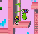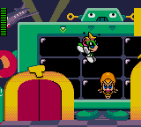 One of its most striking aspects (at least compared to its predecessor) is how much the game omits. Platforming aside, there also isn’t a lot to say about Tempo Jr. There are two mini-games (Simon Says and a strongman game), but that’s about it. The Game Gear just wasn’t as powerful as the 32X, and even late in its life, Tempo’s repeat appearance on the Major Minor Show couldn’t accommodate everything from his first. Some of the features from the first game that are missing here are dancing as a gameplay mechanic, Katy as a power-up (Tempo still dances with her after each boss fight, though), power-ups overall and different endings based on your score.