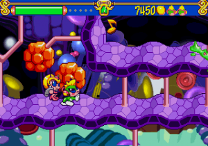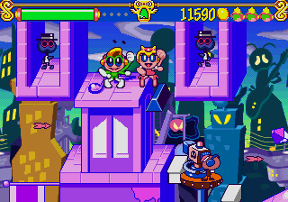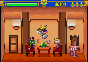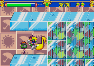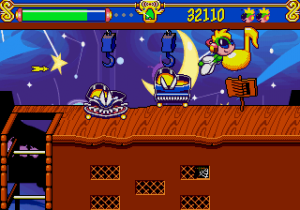 And we can’t ignore the game’s protagonist, either. His enthusiastic personality helps to set him apart from similar characters at the time. Where other characters were marketed largely for their attitude (think Bubsy and Aero the Acrobat), Tempo’s style is just one part of his personality. He’s also a joyful and expressive guy. Watching him run through the levels, you get the feeling that he’s happy to be here at all. And the animations only reinforce that feeling: Tempo’s loose, rubbery movements lend him both flair and a fun personality.