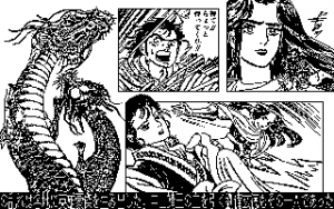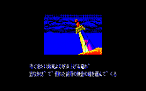 Winky Soft’s game borrows heavily from Dragon Slayer II: Xanadu. The overworld section only features a few shops, while the overhead perspective dungeon is crawling with enemies. After touching an enemy, a separate battle screen with multiple creatures attacking at once. Attacking uses the familiar bump system: keep walking into an enemy until they die. If enemies are moving toward you, they also attack, but if you manage to strike them while they’re moving away, they don’t. The game lacks the sense of exploration and deep experience systems found in Xanadu, rendering Tenchi wo Kurau a generally bland experience. Even so, the game does have a phenomenal intro sequence with fast-paced music and some great manga-inspired visuals.