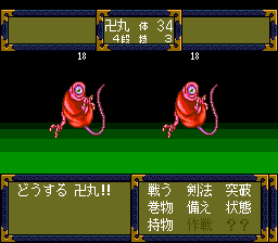 Manjimaru is the most popular game of the series, and it's easy to see why. Having jumped to the Super CD-ROM, the graphics are far better - the ingame graphics now resemble the early SNES Final Fantasy games (the sprites look almost exactly the same.) The art style, while still a bit dated today, looks magnificent in the cutscenes. The battle system is essentially the same, although there's almost no load times, and they move at a lightning quick pace. The sacrifice here is the lack of background graphics in the battles, but it's not a gigantic deal. Having the enemy's hit points above them at all times definitely helps the strategy though.