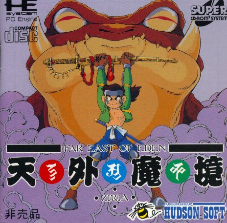 Tengai Makyō (also known by the English title Far East of Eden) was one of the most popular RPGs during the 16-bit era, a suitable rival to Square's Final Fantasy and Enix's Dragon Quest. Published by Hudson and developed by Red Entertainment (known for other successes like Sakura Wars, and PlayStation 2 titles like Gungrave and Bujingai), Tengai Makyō was one of the flagship games for the PC Engine. Its gameplay style never deviates from the usual console role playing formula of the time - huge world maps, lots of battles, mostly uninvolved plots - but what elevated Tengai Makyō to popularity was that it was the first game of its kind on CD. Breaking free of the memory constraints of cartridges, Tengai Makyō was able to deliver even bigger games, filled with animated, fully voiced cutscenes and CD music. We've all gotten used to fully animated CG cutscenes in today's games, but back in 1989, when the Famicom was still at the height of its populaity, characters that could talk were a really big deal.