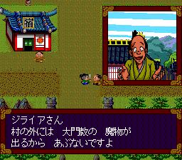 Jipang is a somewhat silly world, filled to the brim with goofy inhabitants, and that's what ultimately makes Tengai Makyō so special. Overall, the gameplay never really breaks the reigns set down by Dragon Warrior, and the plots are seldom more than "visit a bunch of towns and defeat evil", but the silly characters and bright anime graphics bring to life what would otherwise be a somewhat stale experience. Although the cast (mostly) changes from game to game, all of the characters are meant to be descendants of the Fire Clan, whose job it is to slay demons. However, there are few recurring supporting characters to show up: