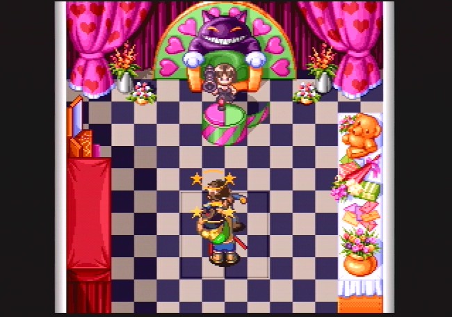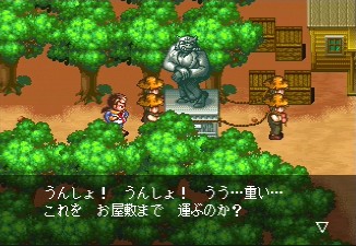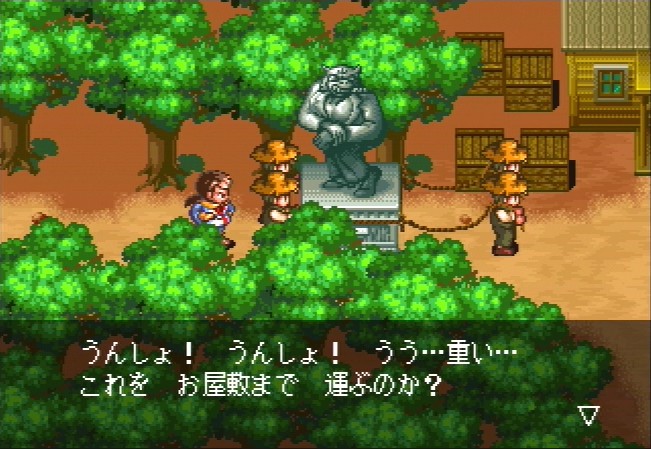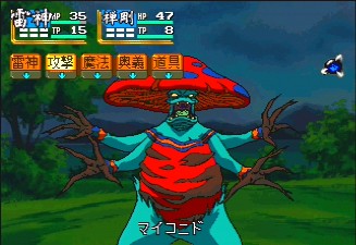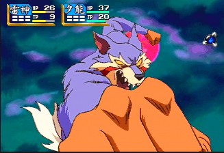 With all of this craziness, it comes as a slight disappointment that this title doesn't really play any differently than its predecessors. There's a lot of dialogue, with gigantic portraits, along with a handful of animated cutscenes. The music is composed by one of the same guys who did Tengai Makyō Zero, and while it doesn't quite match up to that level of excellence, there's still a wide variety of themes, even if some of the techno battle pieces are a bit bland. The graphics are obviously gorgeous compared to its PC Engine and Super Famicom predecessors, but the biggest change are the battle sequences. You can actually see enemies on the map, and chose to avoid them if you can. The actual fighting is completely first person, as the enemies take up almost the entire screen, and animate fairly well. When they attack, they literally strike right at you - it's pretty cool. Some of your characters' attacks are even displayed in full motion video. Alas, it's rare that you fight more than two enemies at a time, and it's still not only rather simplistic, but also slow moving. Still, it takes a backseat to all of the incredulous activity in the game's story - you keep playing just to see what sort of absurd situation you'll find yourself in. This is, hands down, one of the most inventive and innovative RPGs ever made, and one of the best reasons to start importing Saturn games. A PSP port was also released in 2006. Unlike most PSP ports, which scale the resolution to fit the PSP screen, blurring it in the process, the developers zoomed out the display, so the pixels are in the same ratio, but you can see more of the field.