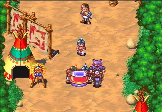 Taking a departure from ancient Japan, Tengai Makyō: The Apocalypse IV takes you to somewhere drastically innovative for an RPG - 1890s America. And not the America we're used to reading about in history textbooks, a drastically skewed version of this beloved country, full of ridiculous misinterpretations, wacky anachronisms and more political incorrectness than you could even possibly imagine. (This same theme was used in the severely underrated PlayStation 2 RPG Shadow Hearts: From the New World.) The hero this time around is a young lad named Rizing, training under the Indian hero Red Bear. After his master is killed in the brutal ice fields of Alaska, Red Bear tells Rizing that he bears the mark of the Flame Hero, and must save America from a whole crew of denizens waiting to unleash the powers of Hell upon the land. You begin on mainland America in Portland, among the Native Americans, and it just gets wackier from there. Throughout the game, you get to visit Hollywood, escape from Alcatraz, stop a villain from carving his face onto Rushmore and ride a gigantic sacred buffalo through ice mountains. It's all spectacularly weird, visiting a town in an RPG named San Francisco or wandering through a dungeon based on Carlsbad Cavern. Naturally, all of it is terribly, terribly inaccurate, although I'd imagine it wouldn't be too hilarious to someone unfamiliar with American geography:
