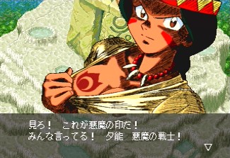 Just like all of the other Tengai Makyō games, this is one is filled with ridicilous characters and hilarious writing. When you come across your first Native American tribe, the chief proclaims very loudly, in the Japanese equivalent of the stereotypical "me Indian you friend" speech you see in old Westerns, that all animals are his friends, then proceeds to get mauled to pieces by a friendly looking dog. And that's not the half of it. Here the characters you get to play as: