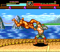 Featuring characters from Fūun Kabuki-den, Ittōryōdan isn't quite a sequel to Kabuki Klash - rather than aping Samurai Shodown, it more closely mimics Street Fighter II, right up necessitating the six button pad. (Well, not absolutely, but you don't want to play this with a standard two-button controller.) In addition to Kabuki, Okuni, Zeami and Push Fujiyama, other characters include Kikugorou (Kabuki's masked nemesis from Manjimaru), Mikoshi (one of the ninja sisters from that same game), lovable ape Manto X, clay robot Jingorō, and foul nemesis Gulp. The graphics have taken a substantial hit compared to Kabuki Klash, with less stylized character sprites and mostly static backgrounds. In 1995 though, they were pretty impressive for the aging PC Engine. And considering that most 16-bit home fighting games were either subpar Neo Geo ports or outright terrible trash (Tuff E Nuff? Power Instinct? Strip Fighter?), Ittōryōdan actually holds up almost as well as Capcom's seminal fighter. So while it lacks the frills that we've come to expect nowadays, and even back then, was pretty much just a well-done clone, Kabuki Ittōryōdan is one of the better fighters of the era and certainly the best one the PC Engine.