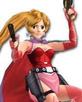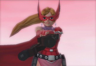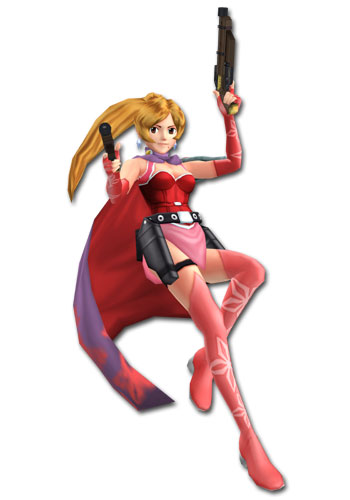 This dual-pistol wielding lady dresses in an absurd outfit and occasionally wears an equally ridiculous mask.