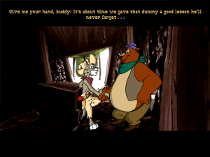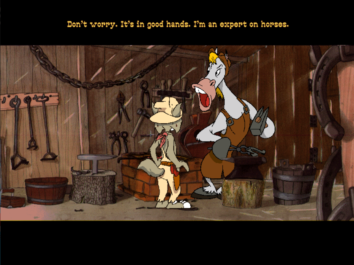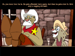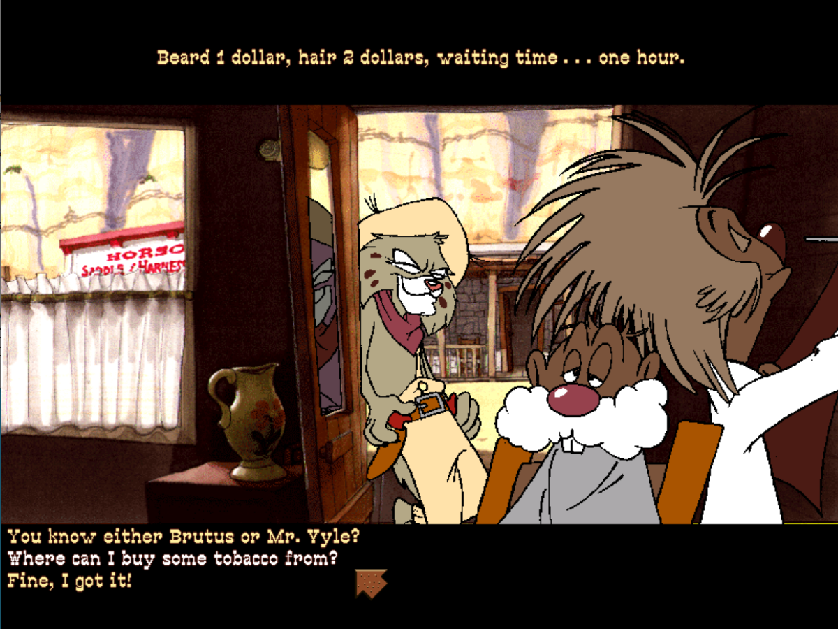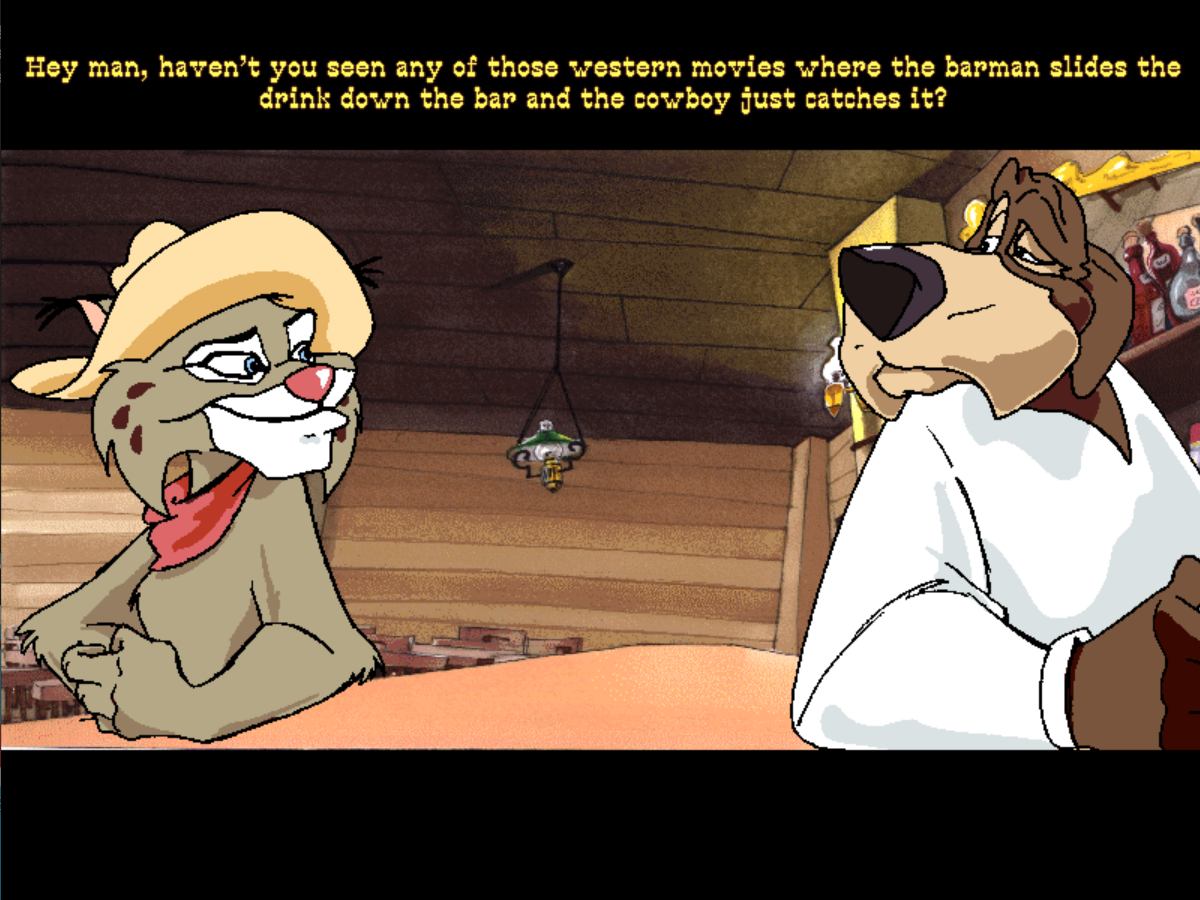 When even the act of completing the game seems as foolhardy as striking gold, it’s hard to recommend Tequila & Boom Boom. That’s a shame because there’s glimmers of something solid underneath. The game goes for an expressively animated look with hand-drawn characters and backgrounds that were then scanned. Some parts look a bit rough or loop oddly, but the result is an attractive interactive cartoon featuring a menagerie of cute anthropomorphic animals and a variety of colorful places that feel lived in. Considering the small dev team size, it’s a very impressive feat.