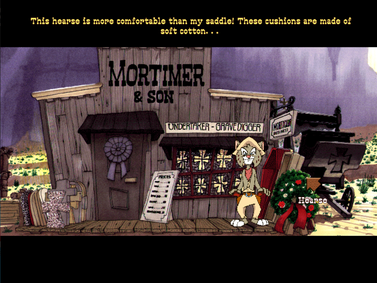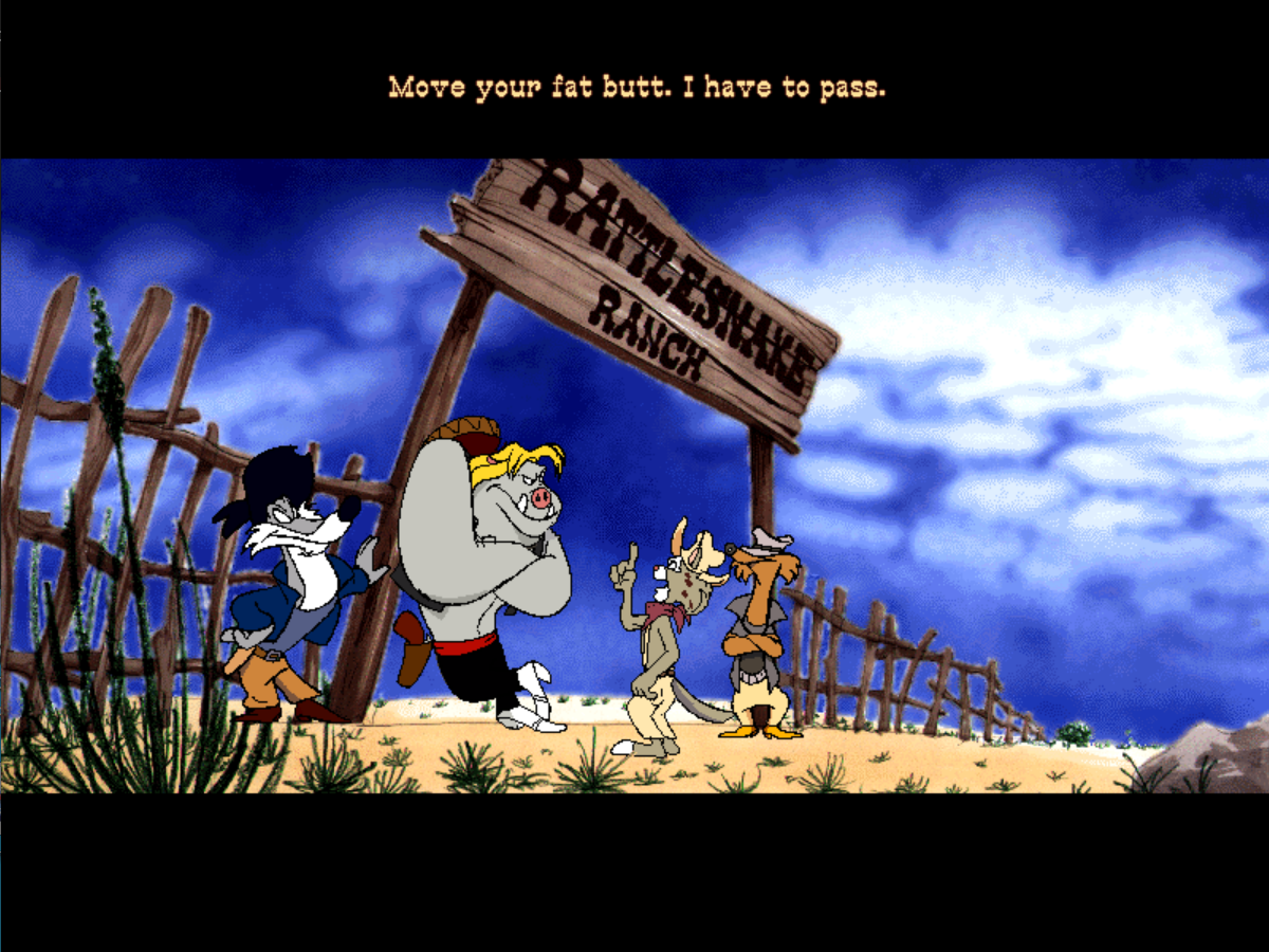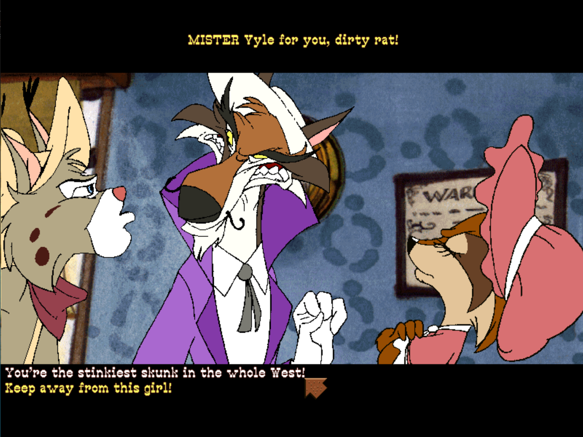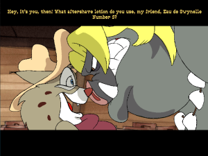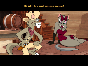 You play as Tequila, a gun-slinging trouble-making lynx who wanders into the nearly deserted Stinky Town, practically owned by the wealthy Mr. Vyle and his various goons. All that he doesn’t own are a sheep ranch run by the pretty but defenseless Melissa and an abandoned mine currently being prospected by Tequila’s strong but ill-tempered associate Boom Boom. There are rumors abound of sheep going missing and gold lurking in that mine, so what’s Tequila to do but poke his nose where it’s not wanted and see what happens.