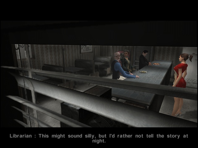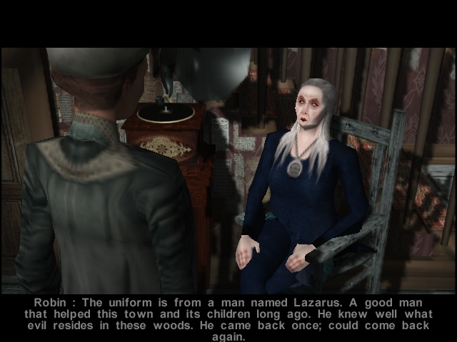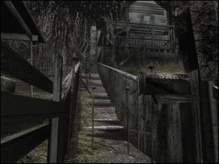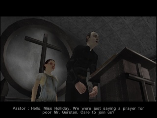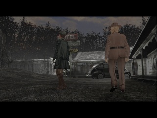 As Rustin Parr is running on the Nocturne engine, the technology remains virtually the same, just with additional filters for character rendering. Still, the way the plot is staged seems more mature and experienced than was the case in Nocturne. The game uses camera angles very consciously and with dramatic effect, like the view through a half-opened shutter into the Burkitsville's sole restaurant where Elspeth is conversing with the villagers, or the focus on the mailbox with the name "Brody", when she approaches the house of the surviving kid's family.