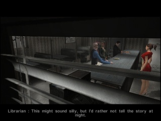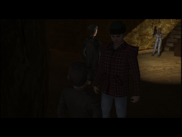 Like Nocturne, the game also suffers from the engine's weaknesses, though. Pathfinding in cutscenes is still flawed, despite a quick and dirty fix that just teleports the characters to their destined position when they're deemed stuck. So next to refined cinematic techniques, there stand situations where Elspeth turns in circles multiple times behind an NPCs back before initiating conversation with him, who of all things greets her with a surprised "Oh, snuck up on me huh?", or when characters are supposed to cut each other's sentences off, but an awkward pause completely ruins the scene (an issue video games don't seem to have quite solved even today).