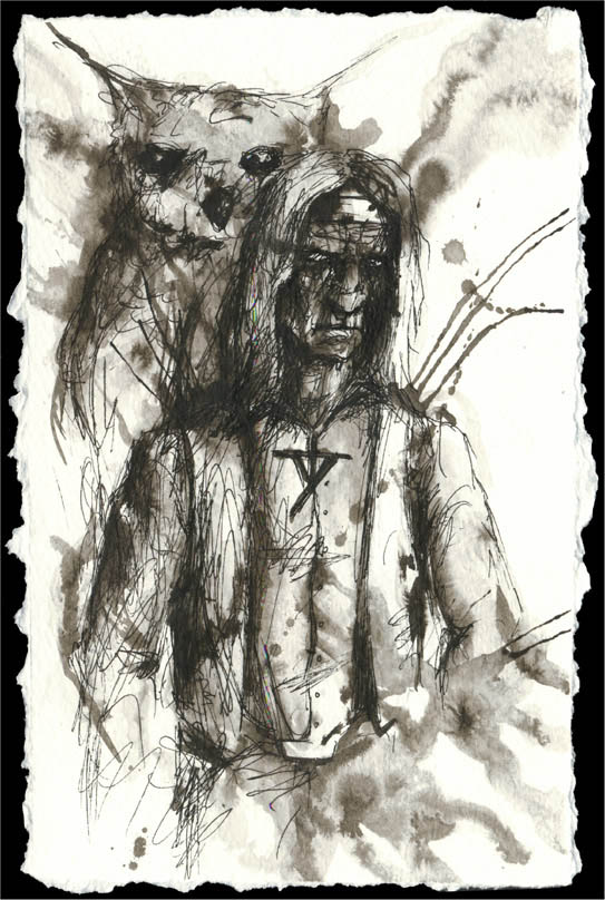 After stumbling through the treacherous woods for a while, Elspeth eventually meets a white owl that leads her to the hut of native american hermit Asgaya, who suggests to her that the evil in the woods might be older than the Blair Witch myth itself, and teaches her the ways of the forest. Now the iconic stick figures come into play, which are actually talismans capable of opening passages not only through time, but even into other planes of existence.