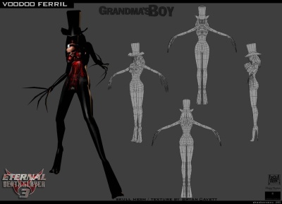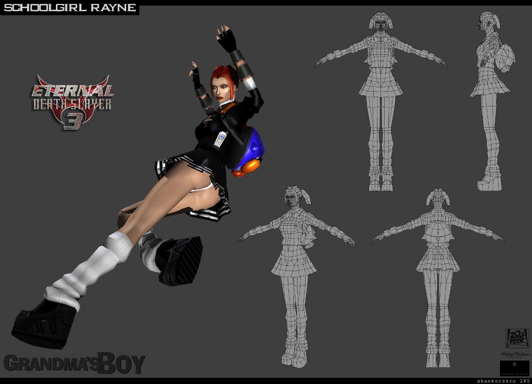 The protagonist was even darker and meaner than Stranger or Rayne. Players would have assumed control of the titular Demonik, summoned to do the biddings of his new human master, which usually involve him inflicting death and destruction. The demon could set people afire, infect them with an instant-lepra kinda plague, and exert telekinesis on numerous interactive objects. Similar to Shiny Entertainment's Messiah, he possessed human NPCs to reach his goals, of course with far more sinister intentions than the small angel in that game. The film Grandma's Boy (see below) also showed a multiplayer mode in some scenes, but that was not meant to be in the actual game, just a mockup for the movie.