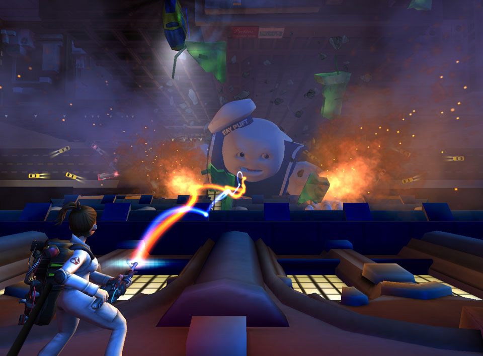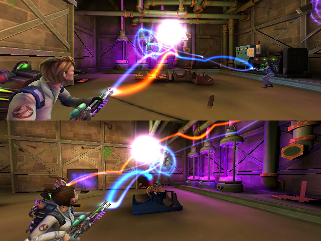 Twenty years after their last live action movie, the Ghost Busters are back (although the time frame is much shorter in the game), and the level of psychokinetic energy in New York is higher than ever. The player isn't put in the shoes of Ray, Egon, Peter or Winston, though, at least not in the single player campaign. Rather, a new employee is introduced, hired by the Ghostbusters as a guinea pig to test out new prototype ghostbusting gear. Despite doing almost all the dirty work for the six long missions, one never hears him utter even a single word. Every time just when one thinks he has something to say, he is interrupted by any of the senior Ghostbusters, none of whom really treat him as their equal. This reflects the philosophy for the writing to change as little as possible of the chemistry between the squad members, and you'll hear the four oldtimers chatter about constantly, just like they did in the movies.