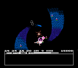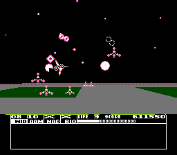 The missions go beyond just shooting and dodging. In the first stage, New York City, the Statue of Liberty is destroyed, and it’s up to you to prevent the aliens from wrecking the rest of the city. There’s also a nuclear reactor stuck in the north end of Manhattan…if it gets destroyed, then it’s an immediate Game Over. It is a little rough seeing Manhattan get destroyed in the opening level, including the Twin Towers if you’re not careful, but they’re reconstructed for the ending, so it’s all okay. In the second stage, it’s imperative that you rescue the captured Omega navigator (a robot dog from the Baal empire), or else your ship won’t make it through the warp gate at the end and you’ll die. In some levels, your performance will help determine how many fighters in your squadron survive; this doesn’t seem to affect much other than the score, but it’s a nice touch.
