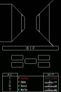 After some very brief training the game thrusts you right into the tower in which the action takes place. With almost no hand holding at all you’re forced to start making sense of how everything in the game works. In your low levels the tower is a meat grinder. It will happily have you for breakfast. It’s highly recommended to save often. More than likely after every battle since a random encounter with multiple foes can wipe out a fledgling party in the blink of an eye. Leveling does not happen automatically. With the needed amount of EP collected, travel back to the town guild hall and exchange the points for the level. At that point you can get your new skills and spells as well.