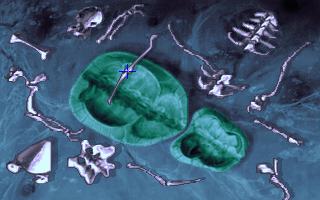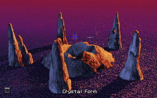 Some of these scenarios are actually pretty damn cool. At one point you come into possession a bomb. A bit later, you wander by a lake inhabited by a Loch Ness monster-type monster. It consumes some turtle-like creature, and coughs up the bones. Nearby are fossilized remains of the same creature. Using your adventure gamer logic, you rebuild the creature according to the fossil, but add a little explosive surprise, and resurrect it with the life crystals. Ol’ Nessie eats the turtle-thing, and a few seconds later, KABLOOIE! Pool’s safe, kids. Also, there is a section in which you must control the moons of the planet using two silver and gold rods. The goal is to create an eclipse in just the right spot. It is a pretty cool instance in any game, being able to move whole planets, but unfortunately this takes a lot of trial and error, and walking back and forth. There are some other nice touches, too. Low also has a PDA called the “Pen Ultimate”, which is used to communicate with the rest of the crew, in addition to having a playable clone of Lunar Lander.