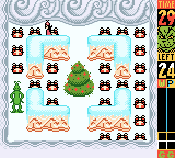 While the game takes more after the art style of the movie’s merchandising more than Seuss’ own work, the game generally looks pretty nice. There’s a lot of nice little details, like the way different Whos will react upon spotting the Grinch, and his goofy run while he’s being chased. One particularly goofy touch is the facial portrait of the Grinch, who’s eyes and tongue bug out upon alerting a Who. Each of the levels also does a decent job of changing up the scenery, so you’ll go from caves, to houses, to snowy city streets, meaning that the mazes themselves never get too similar. The music is pretty decent as well, although it’s rather unnoteworthy for a Konami game. Sadly, there’s no 8-bit rendition of the famous theme to be found.