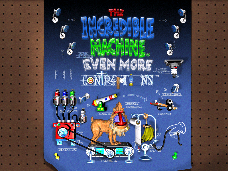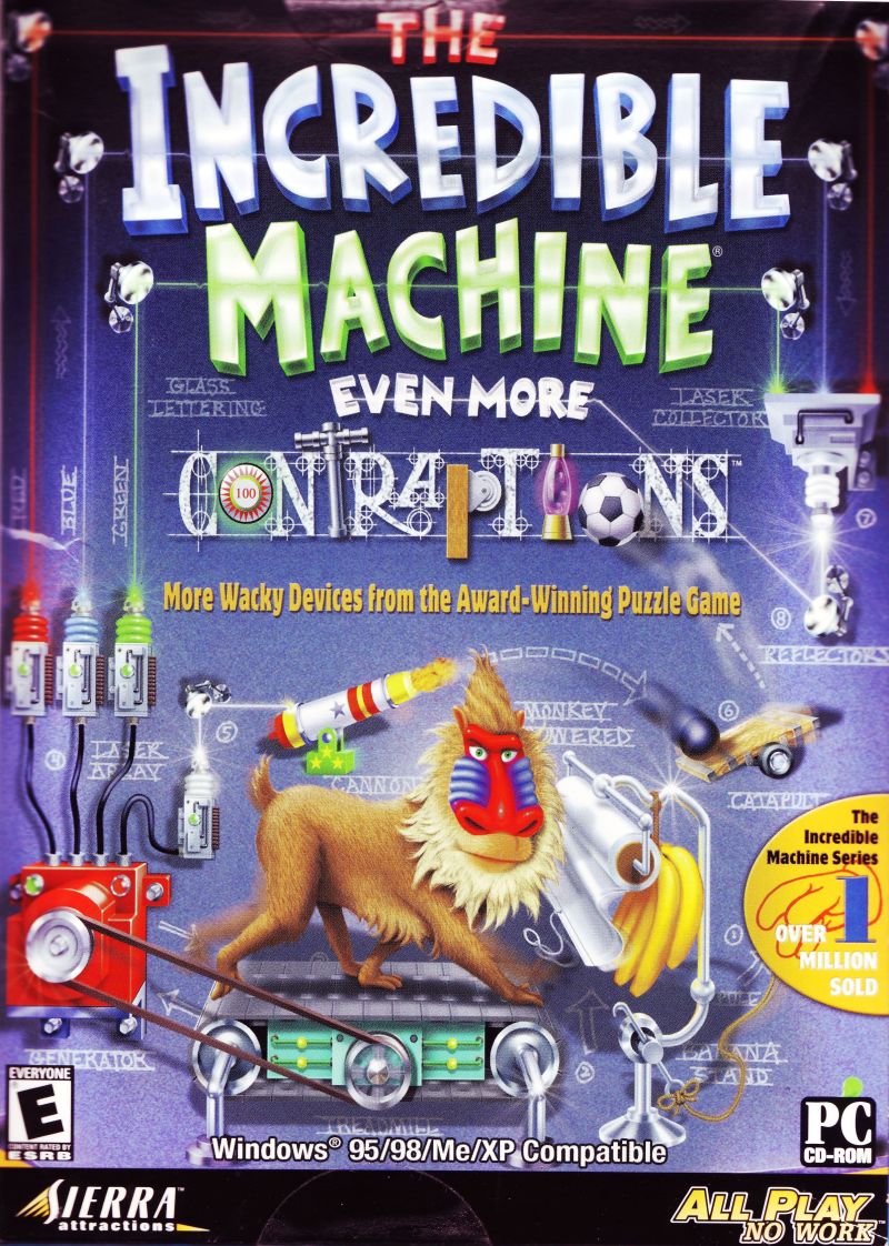 A year later, The Incredible Machine: Even More Contraptions would be released. It’s the same game as Contraptions, only with a set of 200 new puzzles and some extra music tracks, including some returning from the original TIM. The CD also comes included with a smaller game made for Palm OS machines. This was formerly a shareware game sold under the title Puzzles-In-Motion, but at some point, Sierra bought the rights to it and had it included with Even More Contraptions.